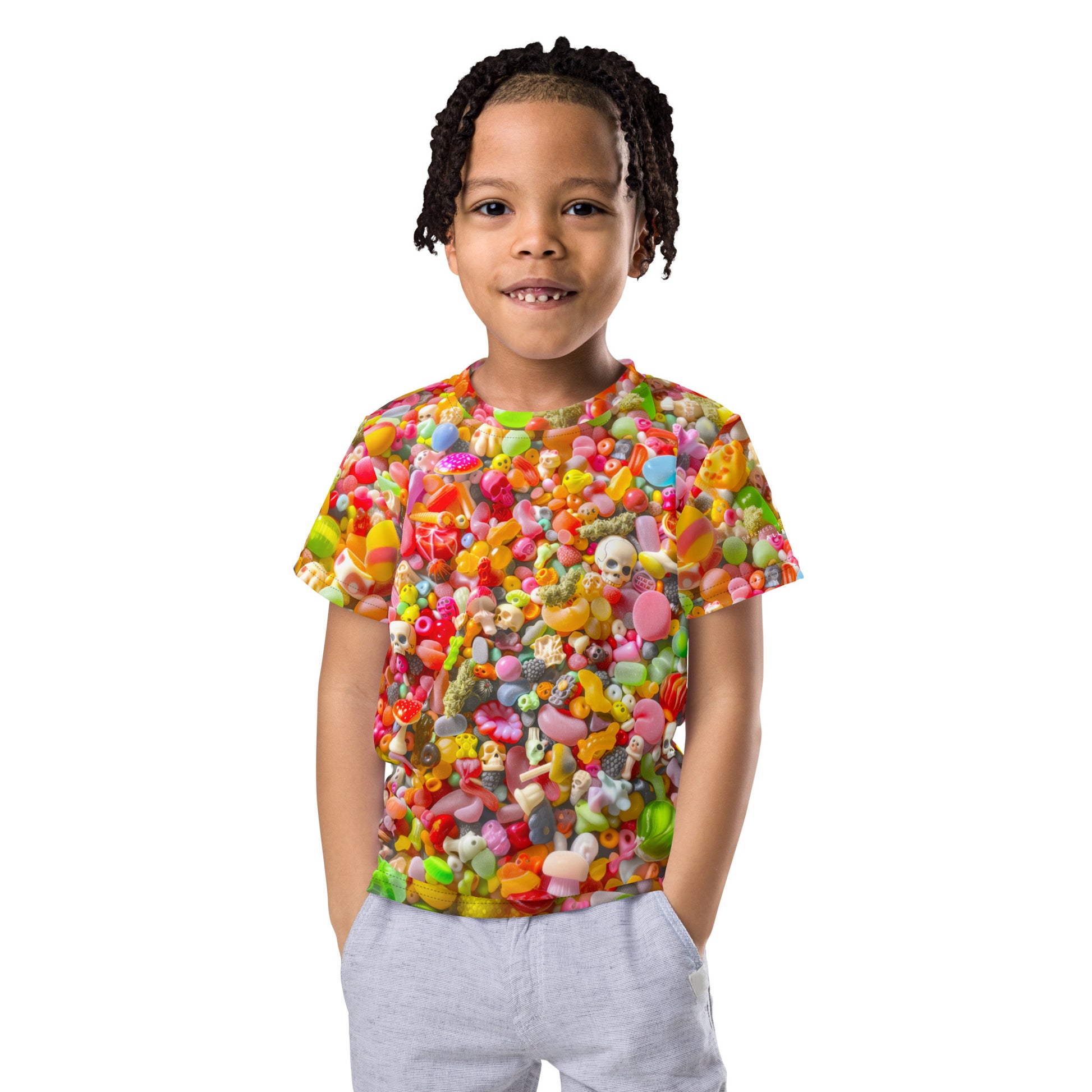 Decked out in this candy and skull-speckled "ANNIVERSARY Kids Tee," your little one will be the talk of the playground, a trendsetting trick-or-treater every day of the week.
