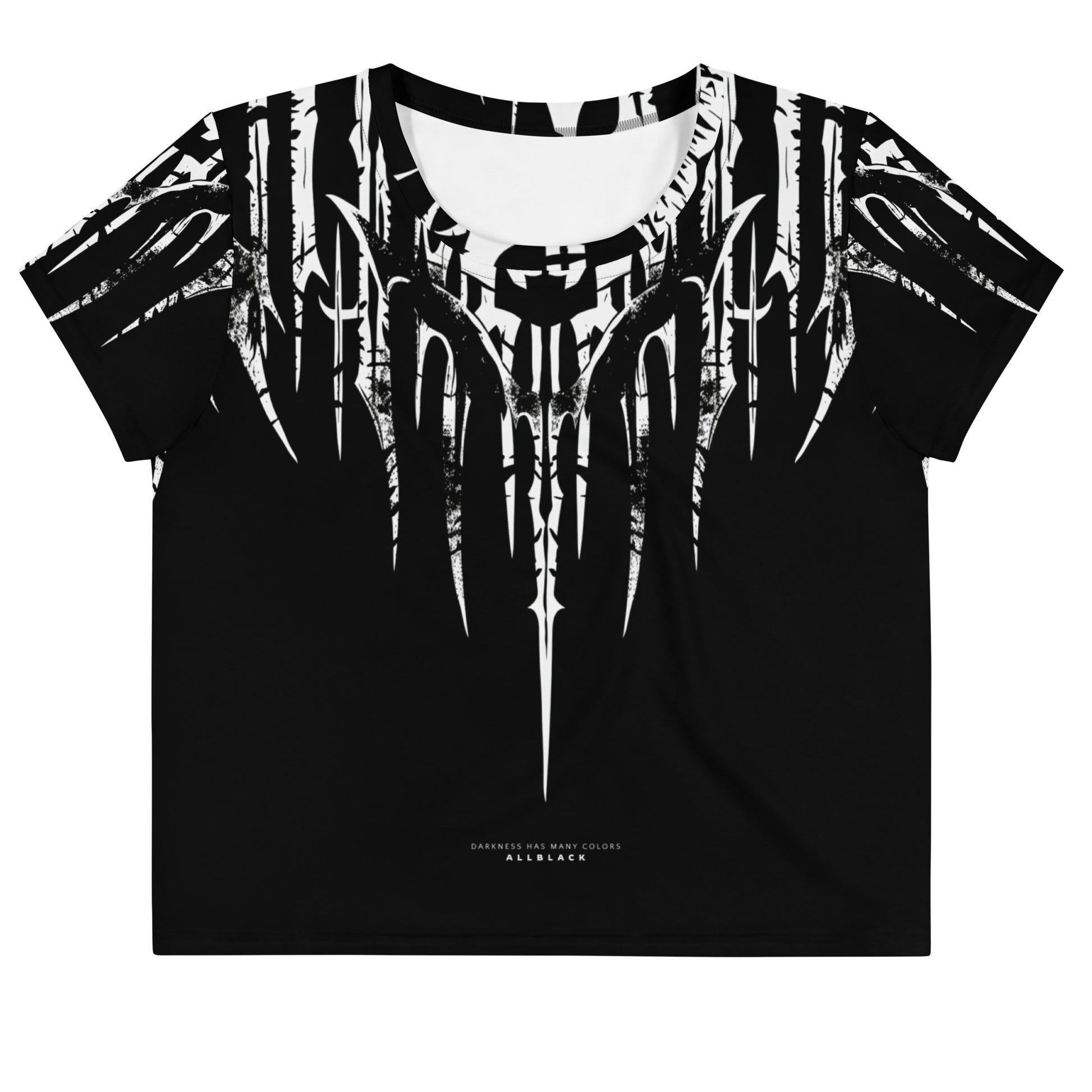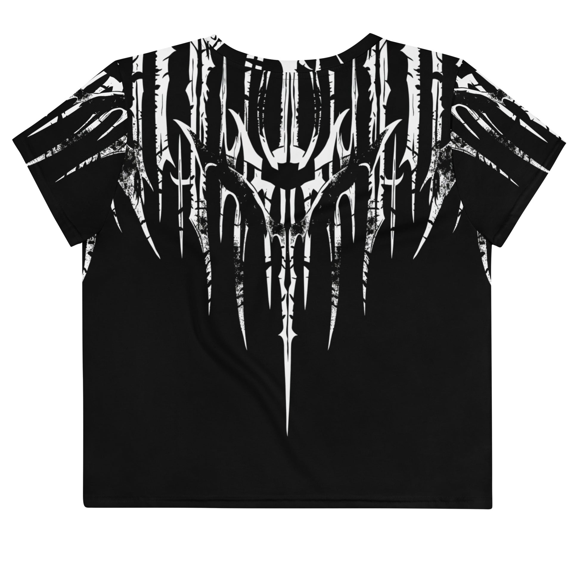 This crop tee is a testament to the wild, where every slash of white against black is a memory of a winged creature's dive. Wearing it is an embrace of the drama of the fall, the beauty of the landing, all captured in a single, striking piece.