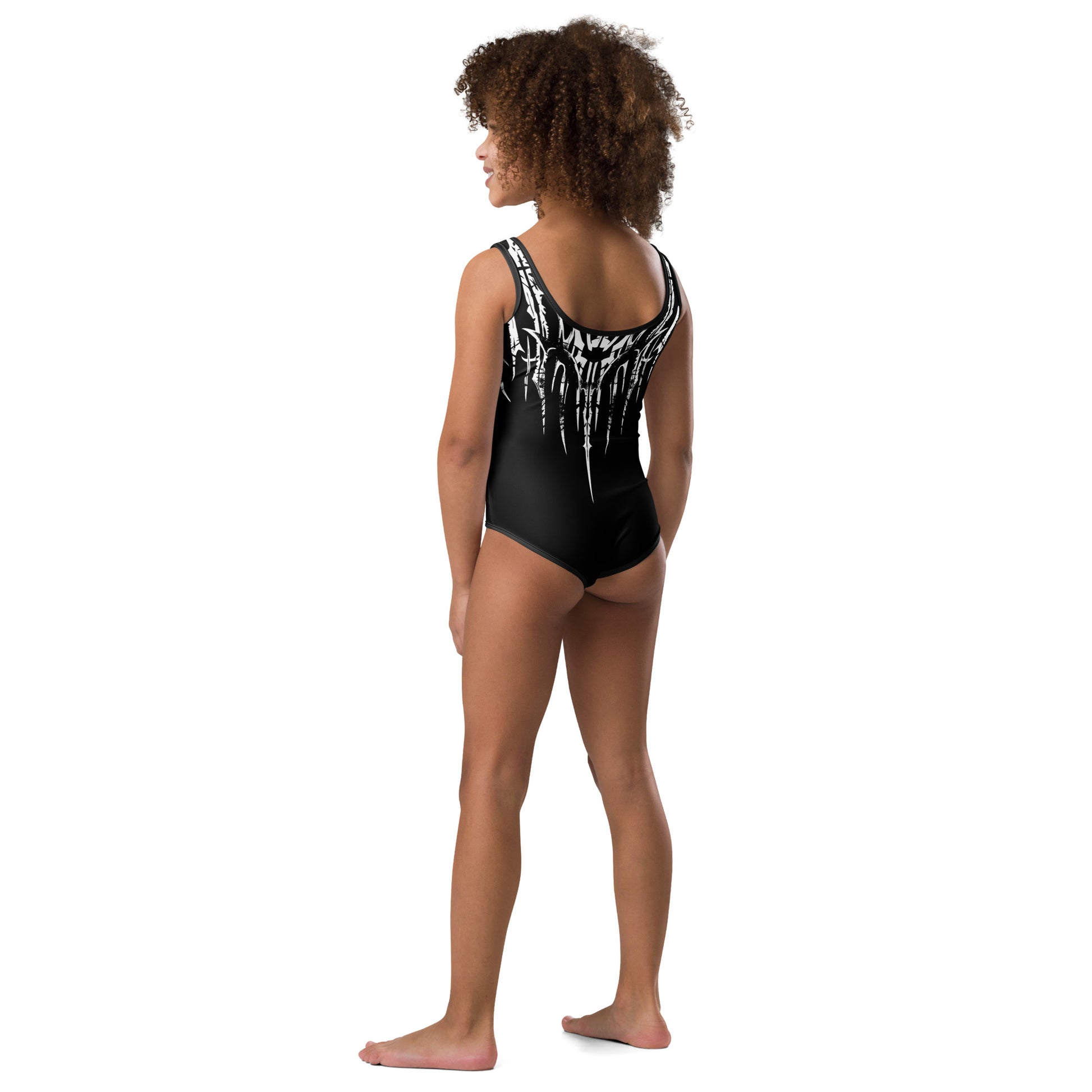 Even the littlest adventurers can cloak themselves in the mysteries of old worlds with the 'FALLEN' kids swimsuit. Each pattern a story from a whispered legend, perfect for the young explorer setting sail on seas of imagination and play.