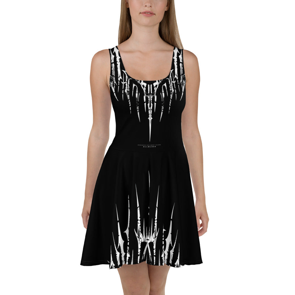The 'FALLEN' Skater Dress is your secret armor, woven from threads of midnight tales and dawn's first light. In this garment, you don't just enter a room; you make an entrance that lingers like the last note of a symphony.