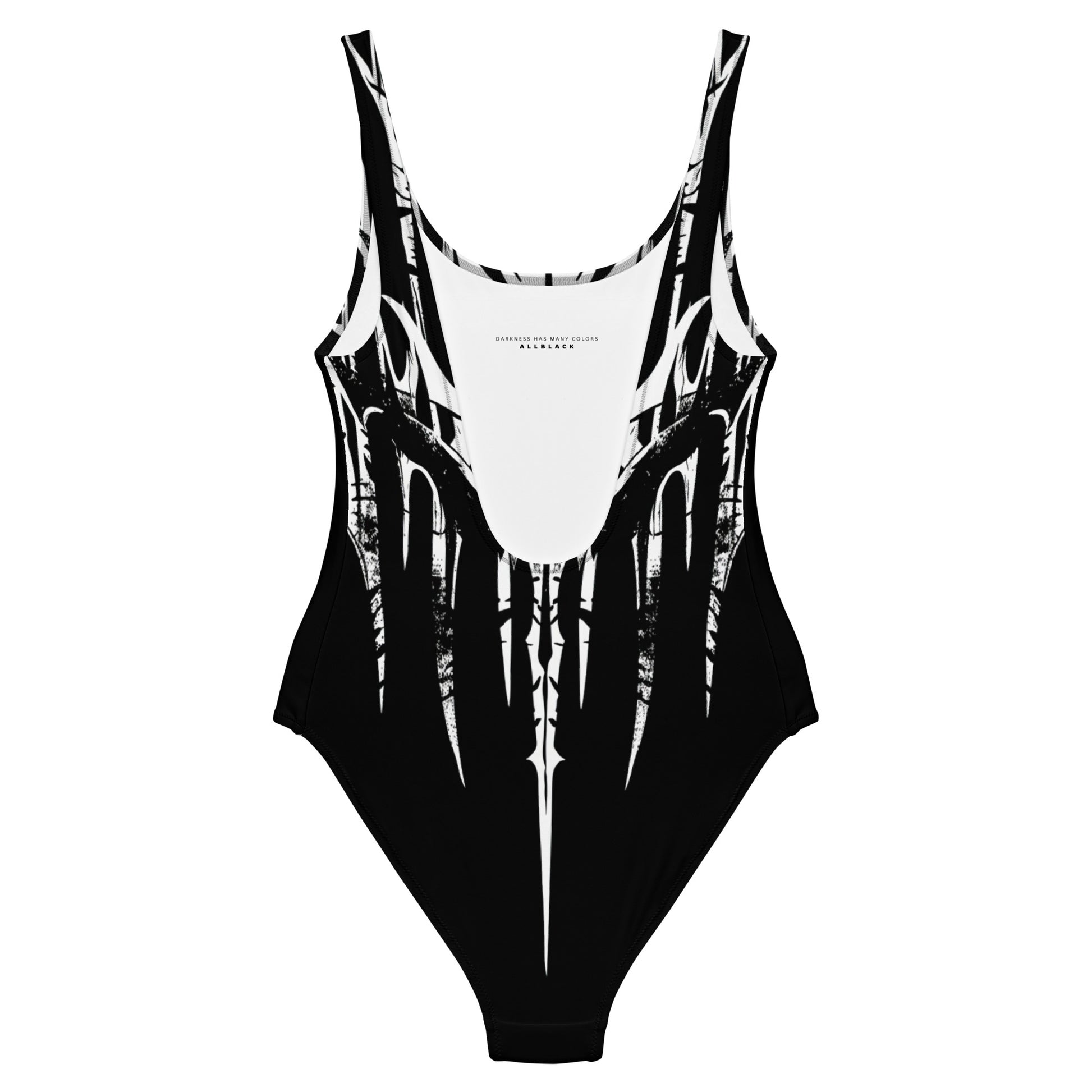 Don the 'FALLEN' swimsuit and drape yourself in the mystery of ancient myths brought to life. Its print invites the wearer to delve into deep waters with the grace of a fallen angel seeking redemption.