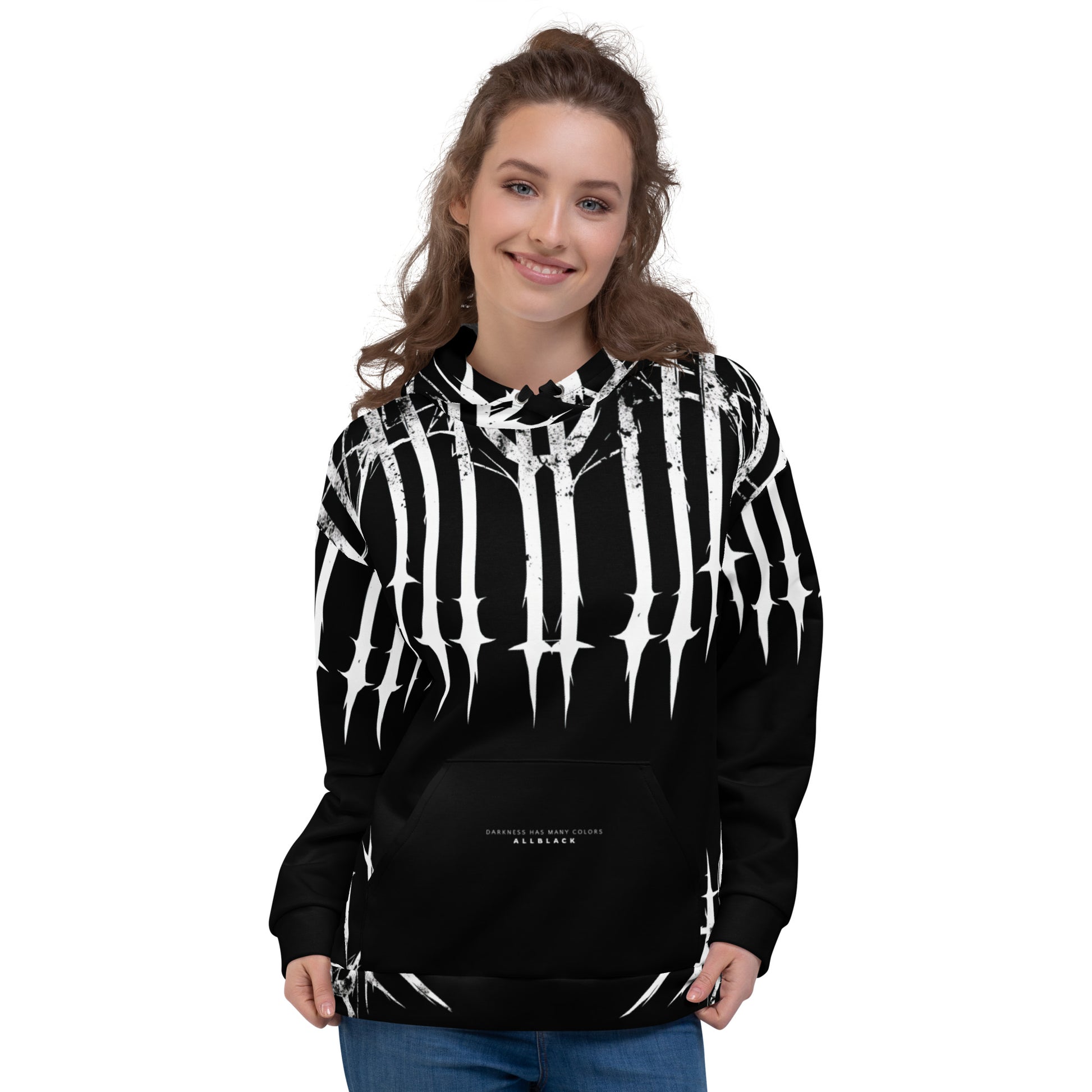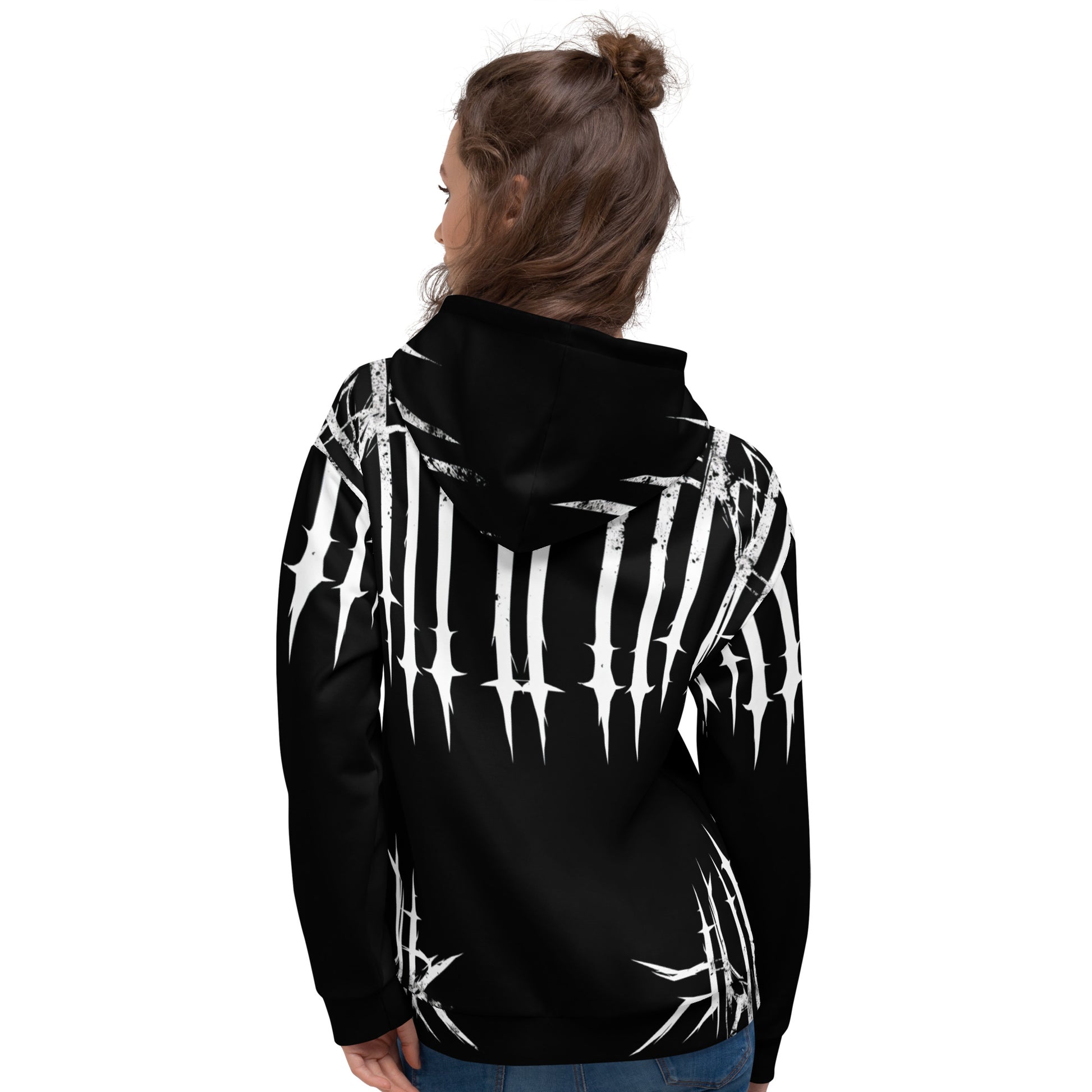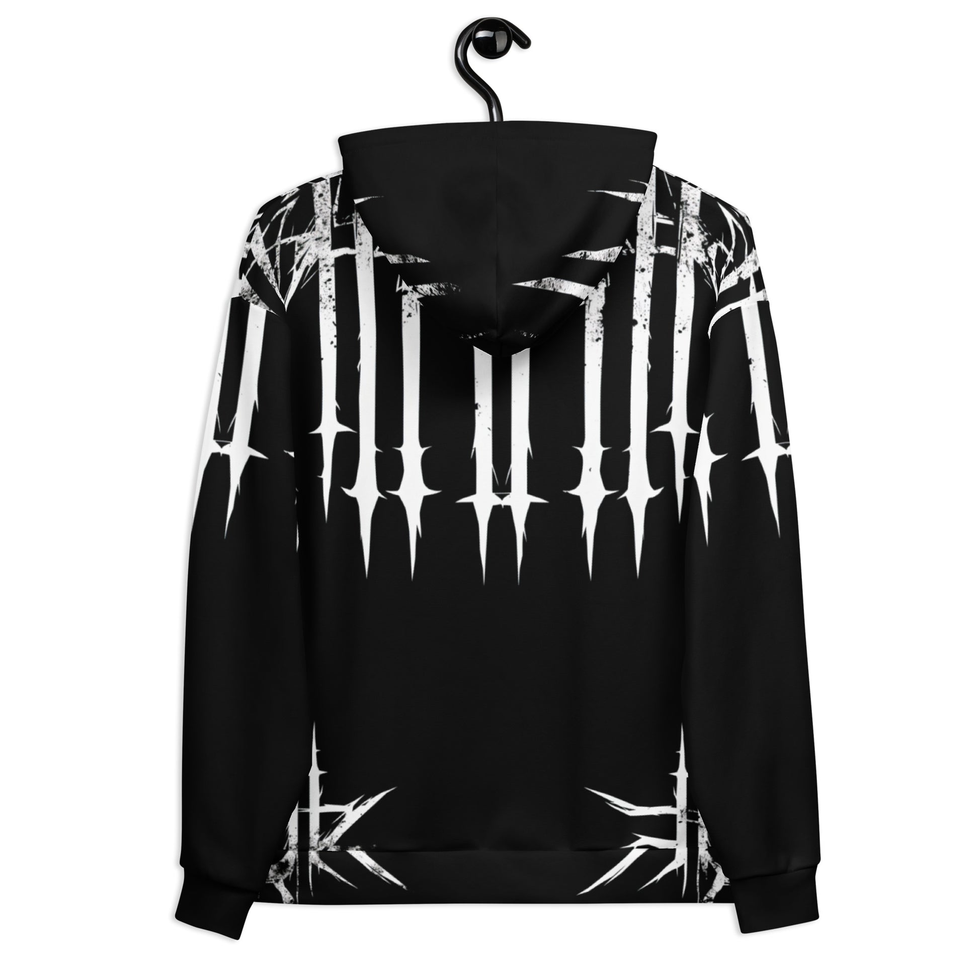 For the enigmatic souls who thrive in the dusk, the GATES Hoodie offers a cozy sanctuary. Its soft fabric is a canvas for stark, dripping contrasts, perfect for the individual who walks the line between seen and unseen.