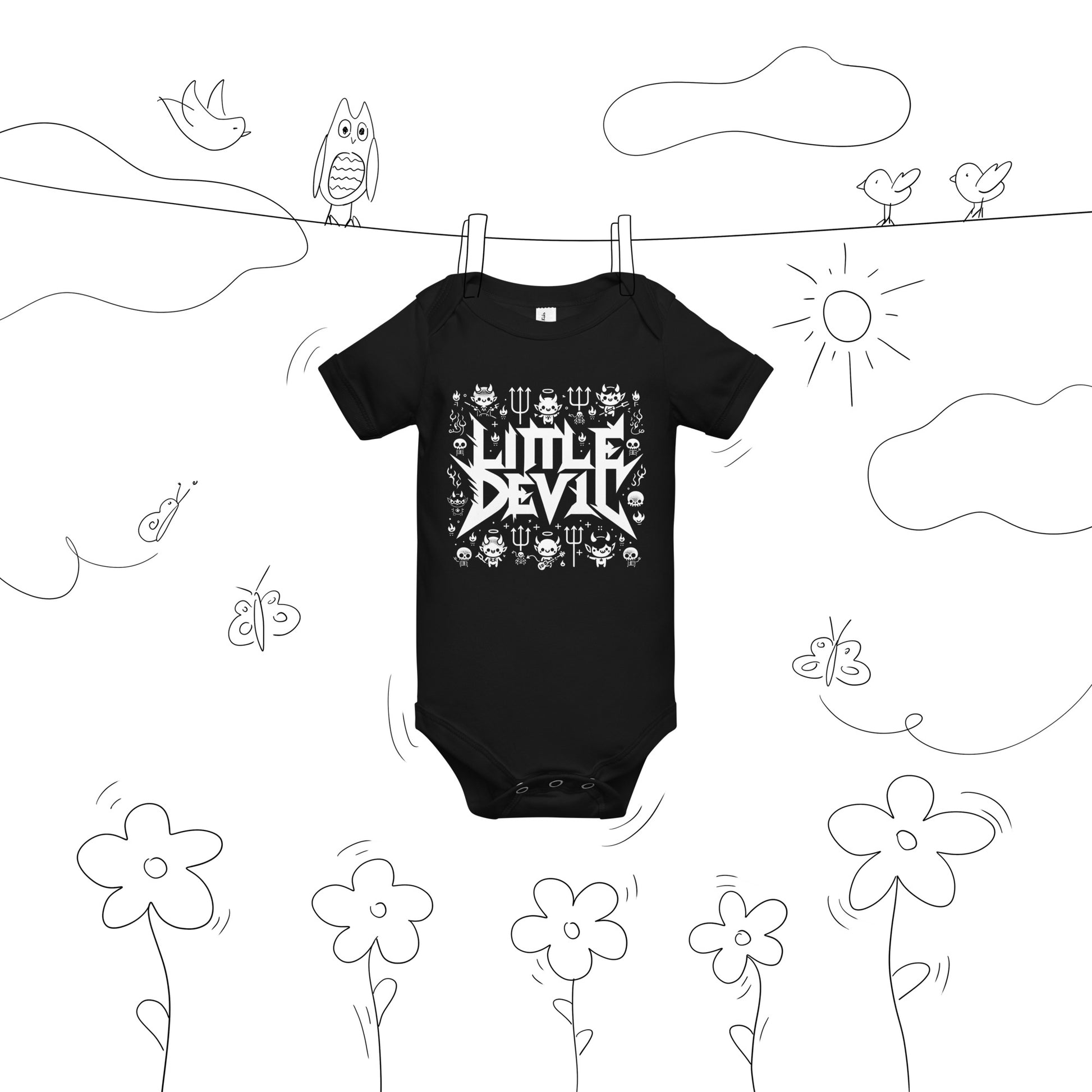 Embrace the adorable paradox of innocence and impishness with this slyly sweet one-piece, ideal for the tiniest trendsetter with a hint of rebellion.