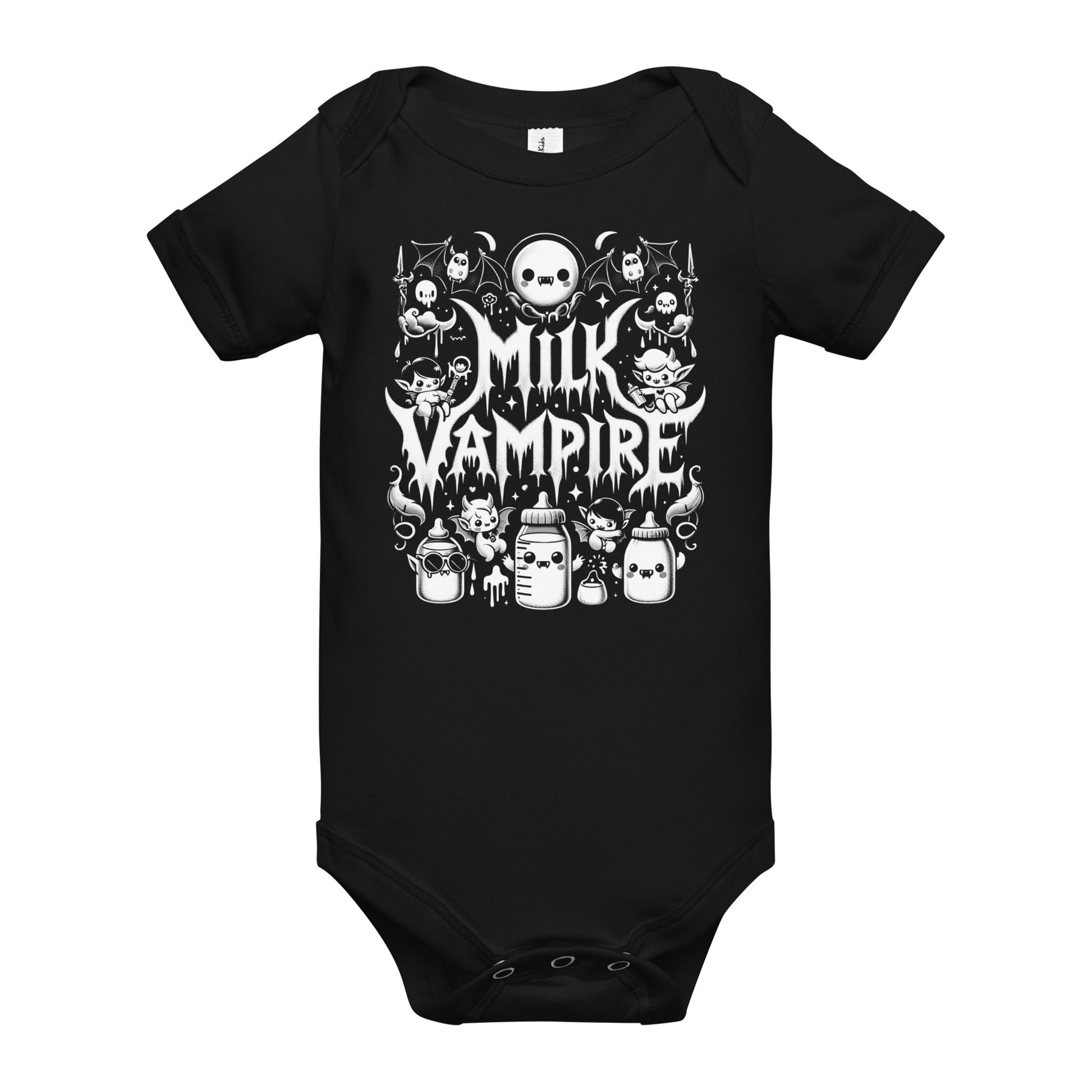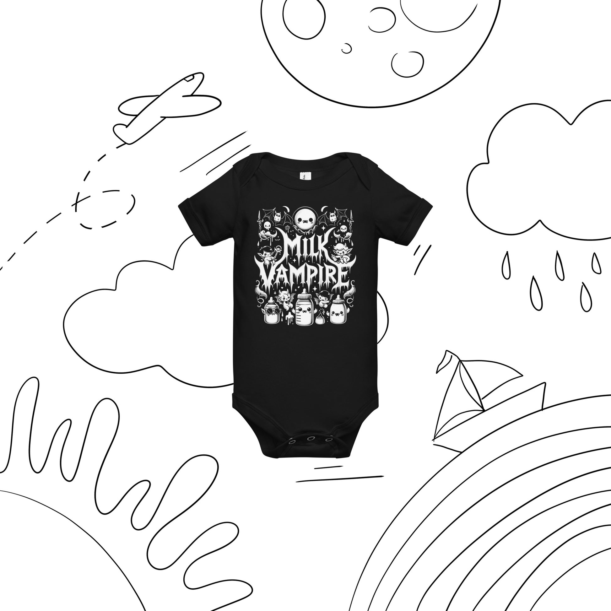 Dress your little night owl in the MILK VAMPIRE Baby Body, where adorable meets the alternative. It's perfect for the baby with a playful edge and parents with a sense of humor, ready to claim the title of the cutest nocturnal creature in the crib.