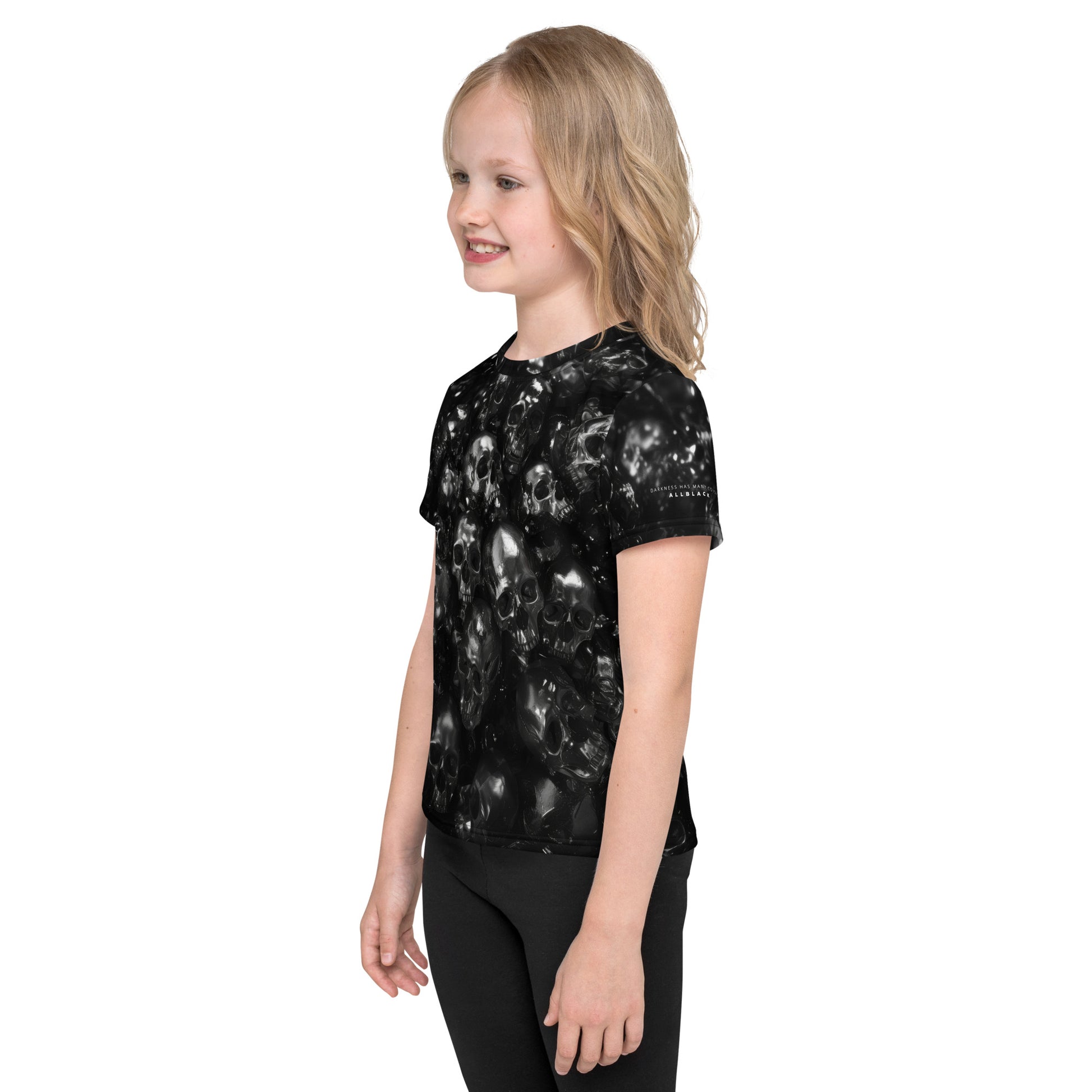 The PILES DARK Kids Tee is a mosaic of the mystical, each skull a silent sentinel of playtime's secrets. Let your child wear the night's enigma as easily as a shadow wears the setting sun.