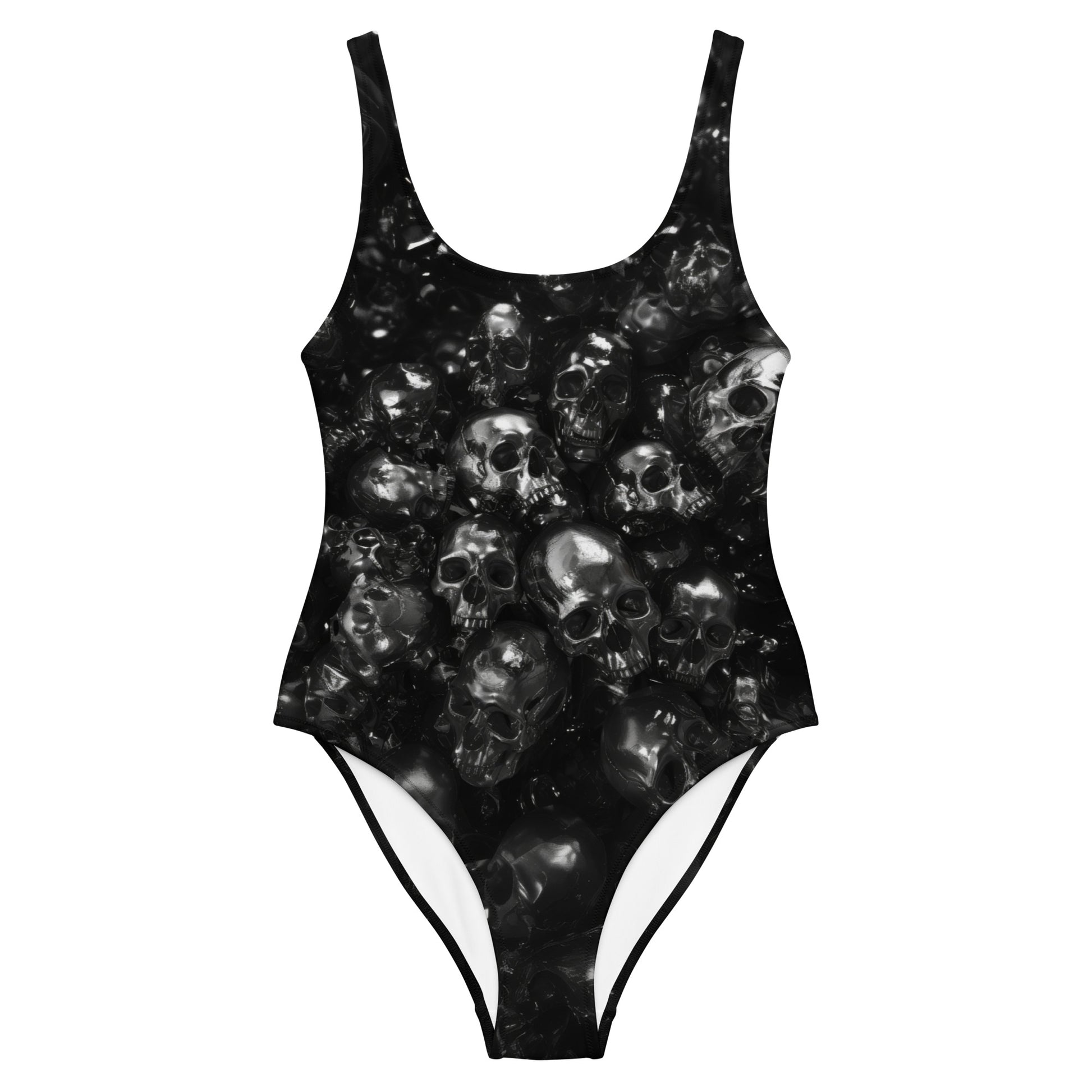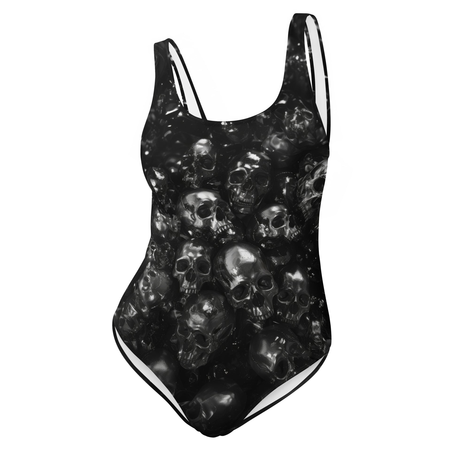 Don the 'PILES DARK' swimsuit and embrace the lore of the ages. Each skull a story, every curve a legend; it's the attire of those who walk with mysteries of the deep, and the guardians of sunken treasures.