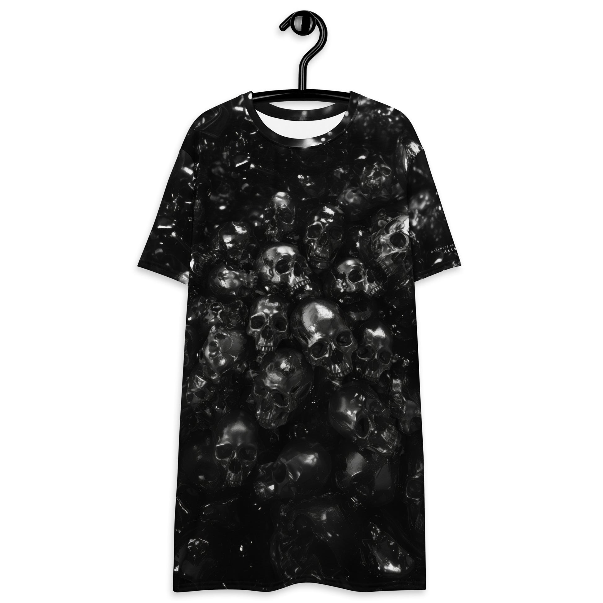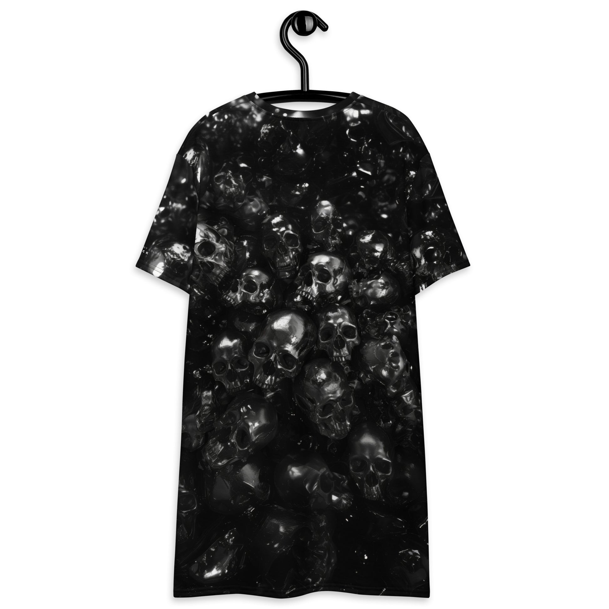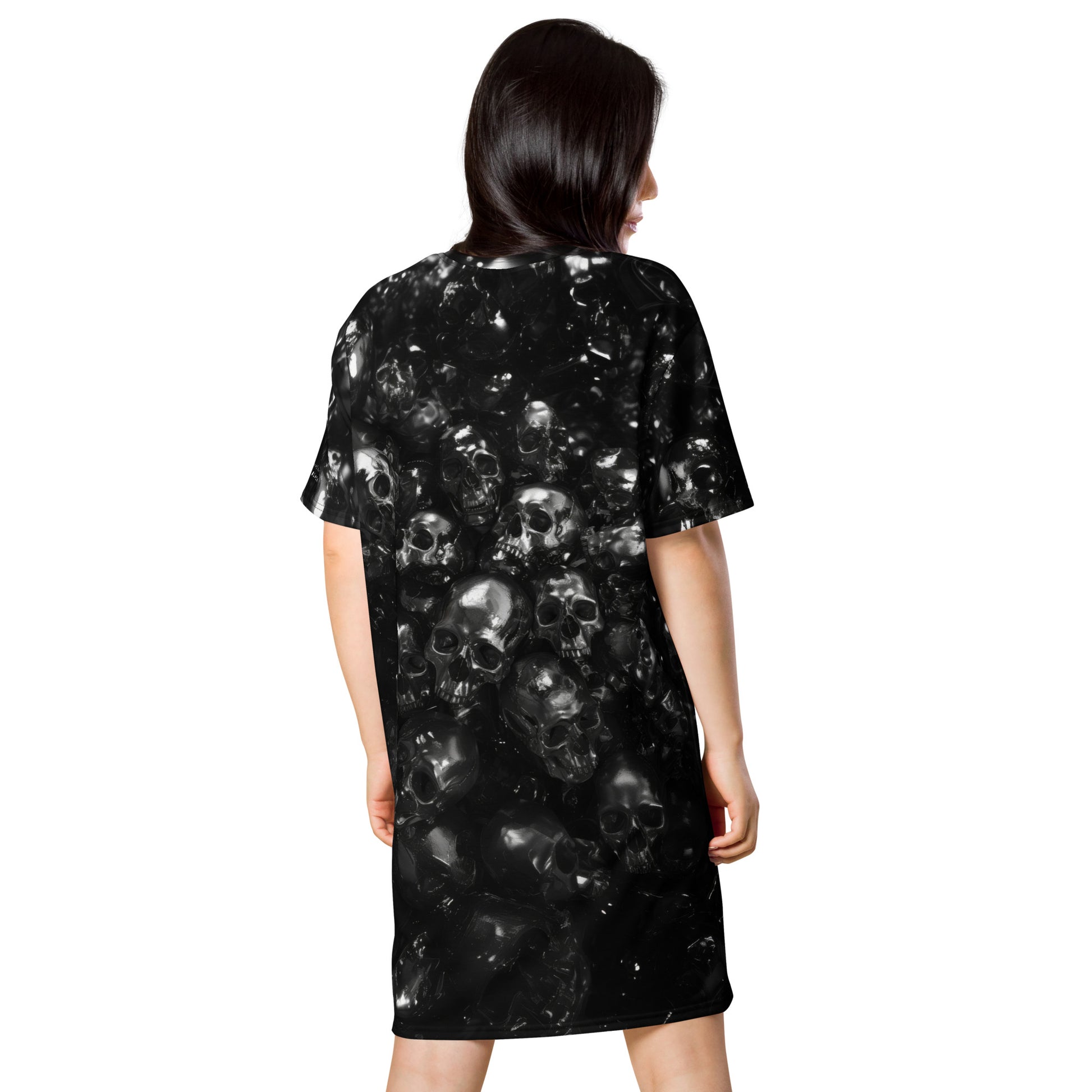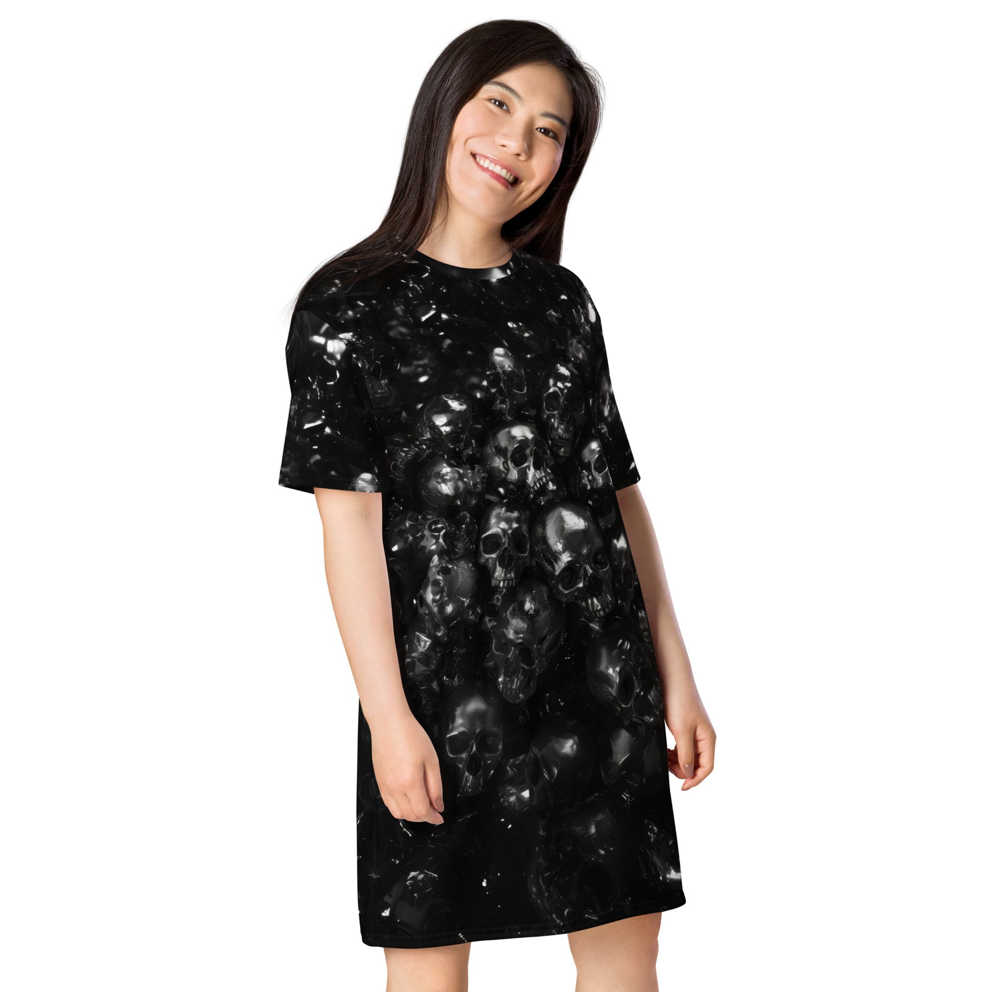 This 'PILES DARK' T-shirt Dress is a casual proclamation of sophistication, where the darkness of the print belies the lightness of its touch. It’s a paradox, a conversation starter, a garment that wears you as much as you wear it.