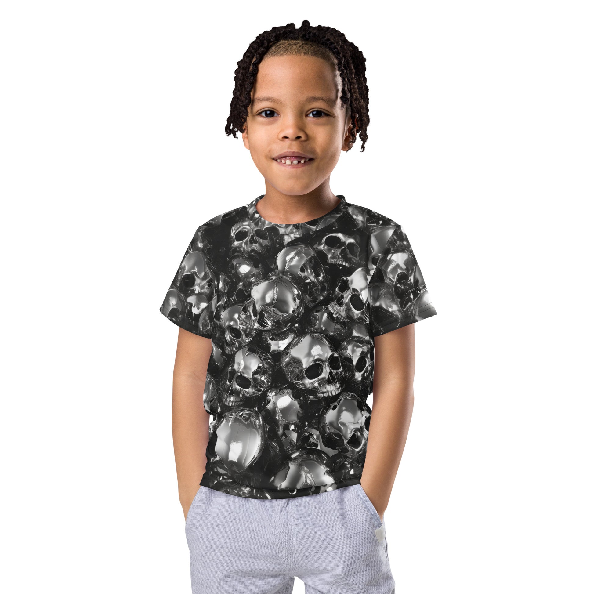 With the PILES LIGHT Kids Tee, your child is wrapped in a constellation of earthly stars, each skull a beacon in the night, guiding them through the playground cosmos with the wisdom of the ages.