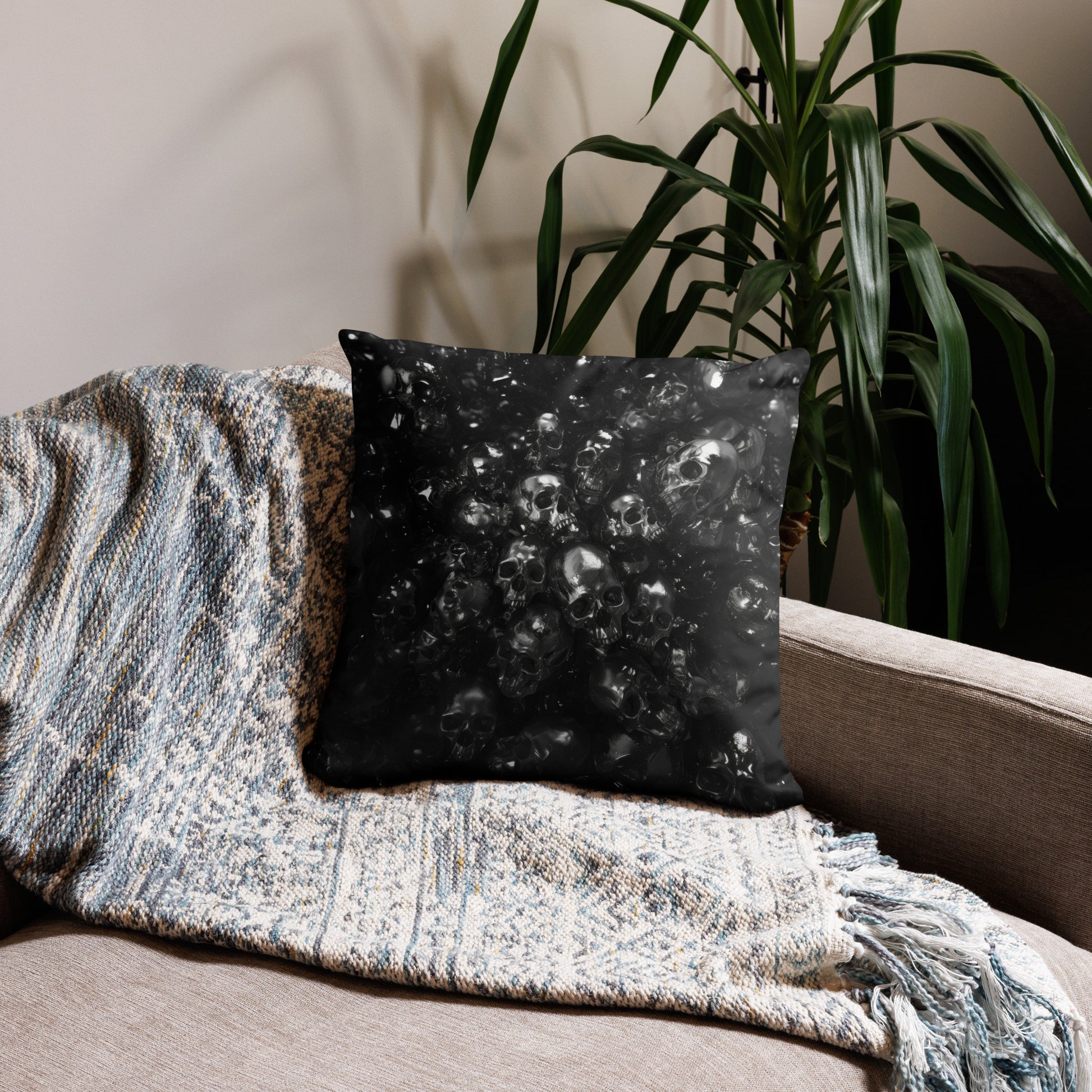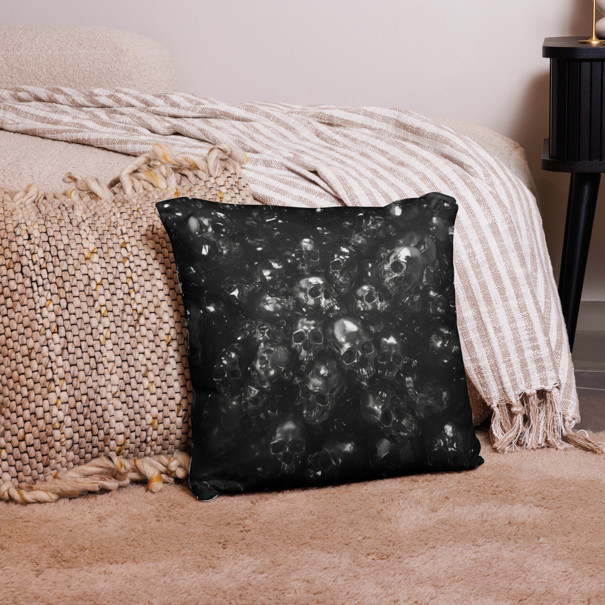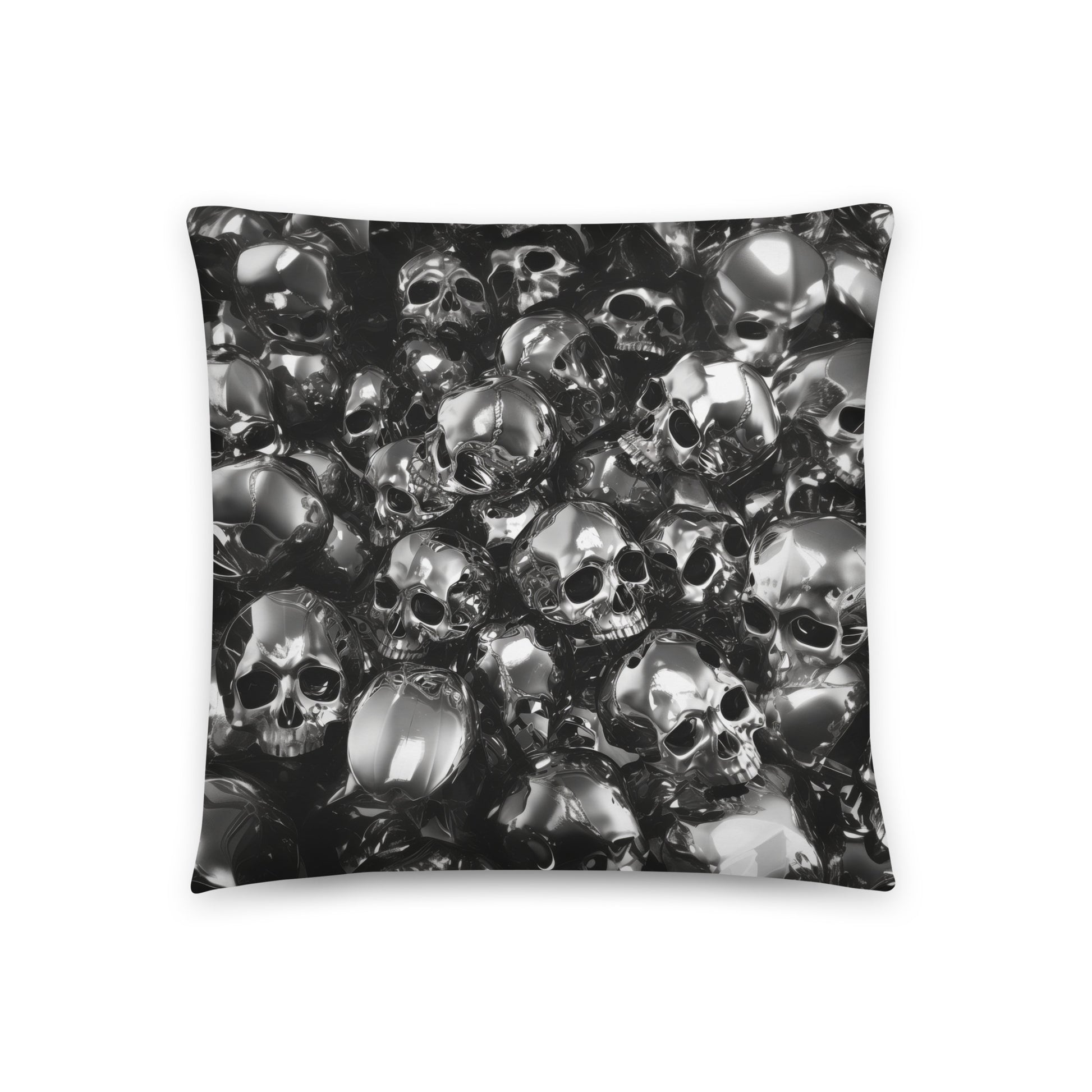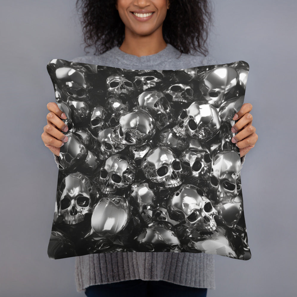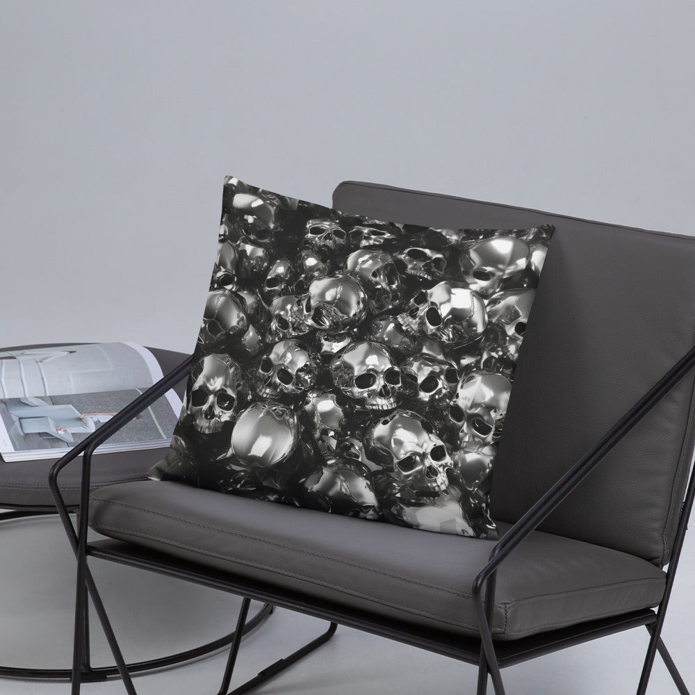 The "PILES" pillow is a plush field of metallic reverie, a softscape where each cushioned skull is a testament to the timelessness of style. Ideal for the modern dreamer whose aesthetic is as bold as it is reflective.