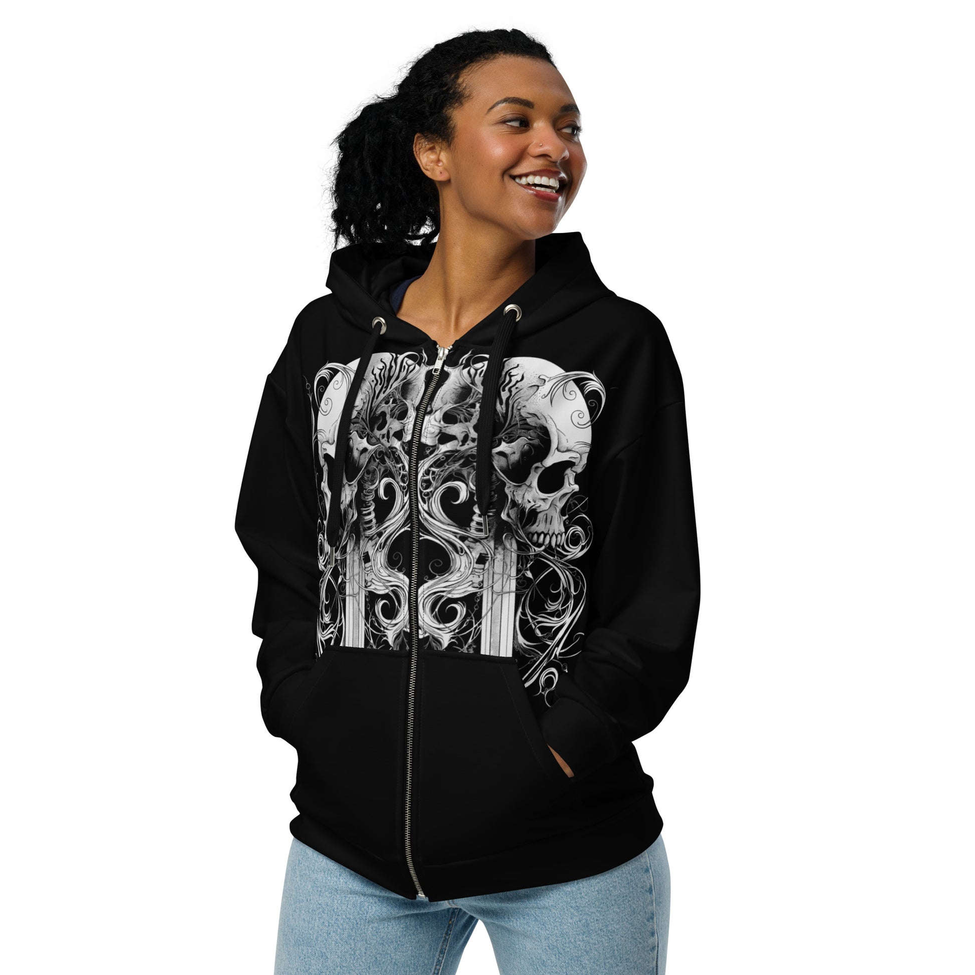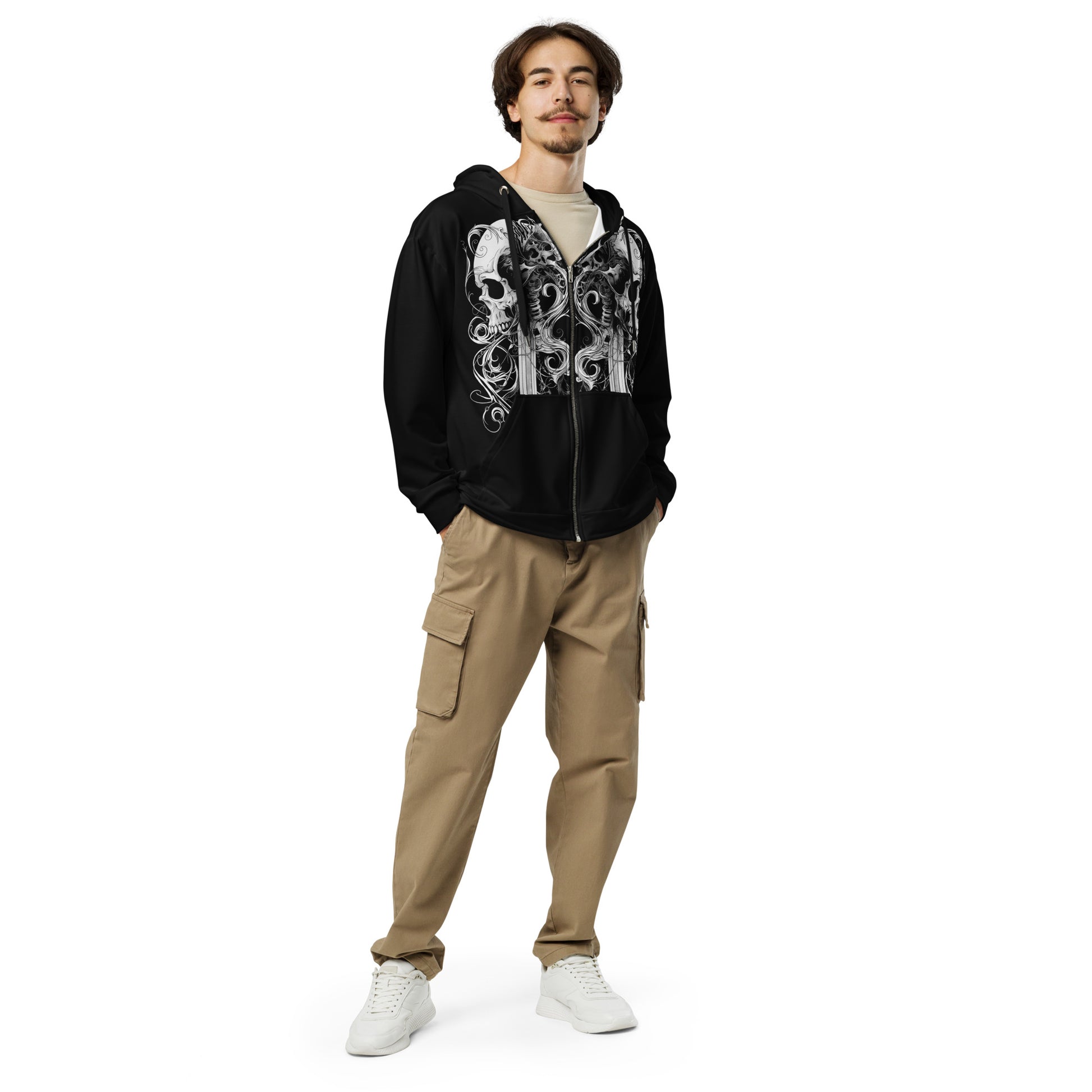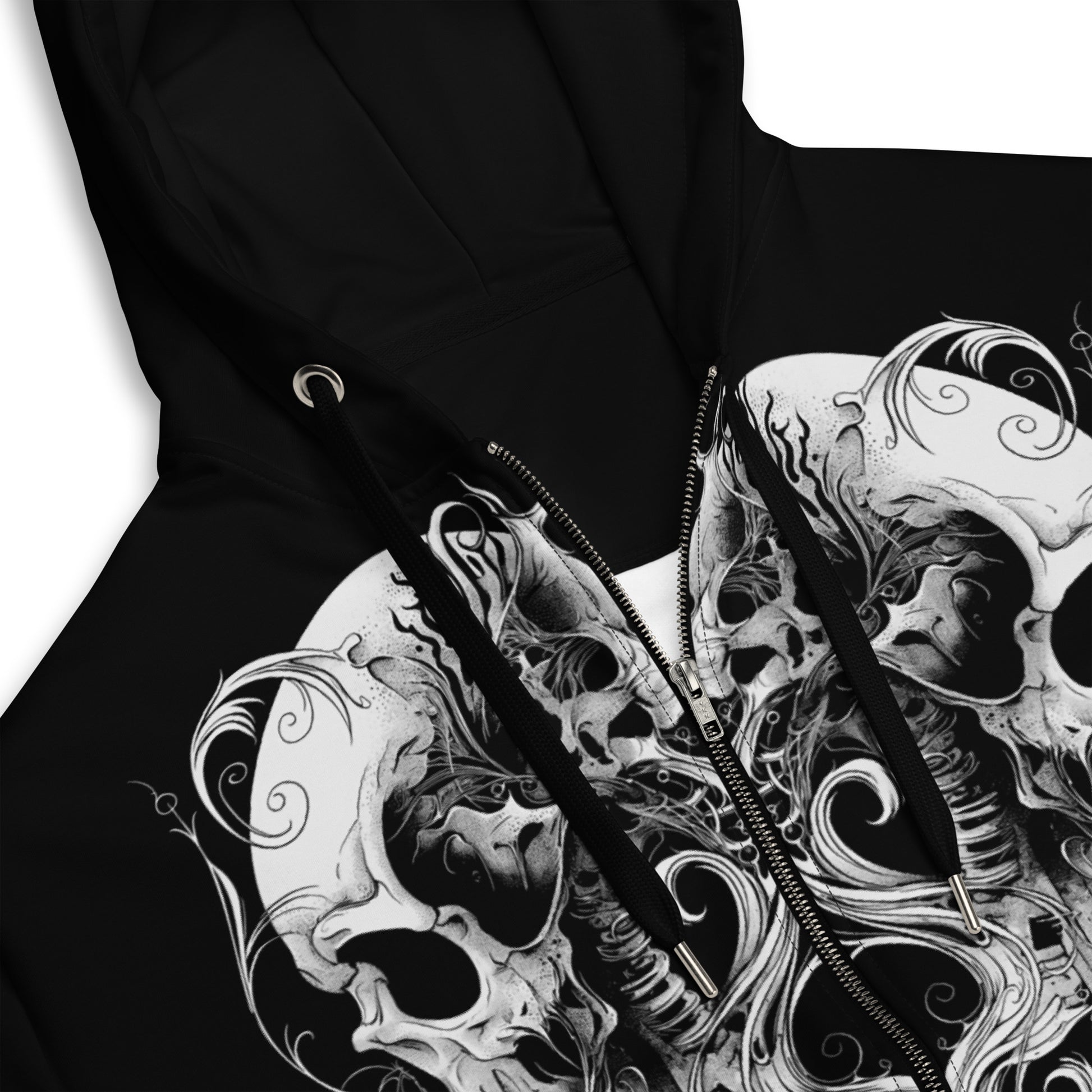 Step into the split zip hoodie and let the symphony of your movement stir the silent spirits sketched upon your chest. It's not apparel; it's a statement that speaks in the language of the night, understood by those who know the rhythm of the stars.