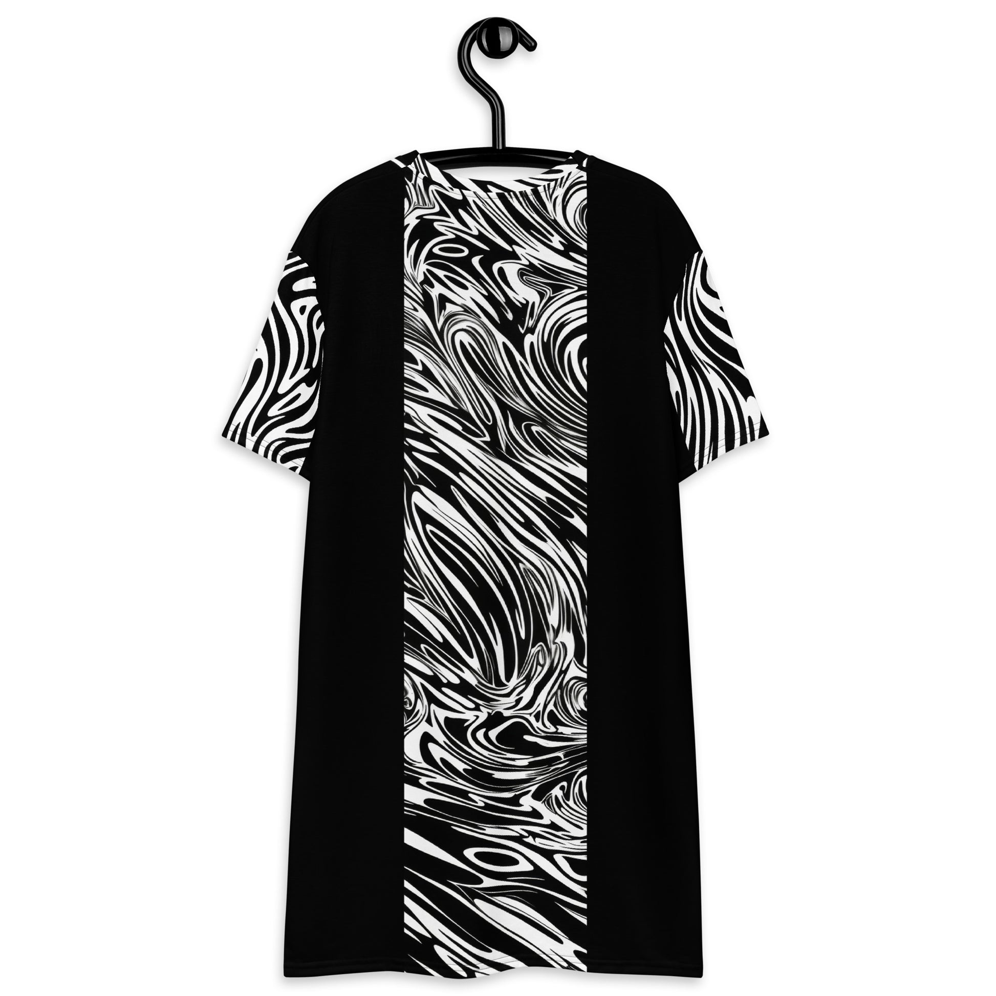 This 'STRIPES' T-shirt Dress is a journey through the abstract, a maze of bold lines that tell a story only the wearer can finish. Each stripe, a path untaken, each contrast, a destiny waiting to be embraced.