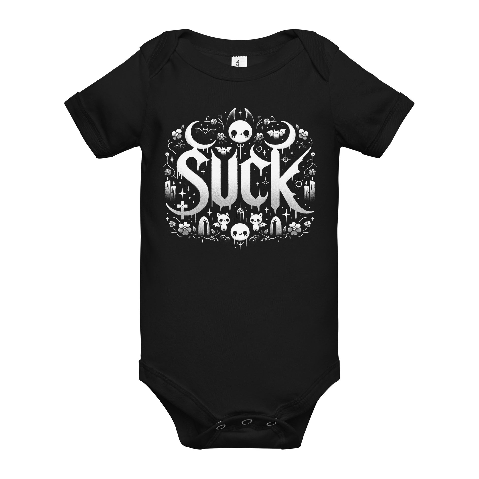For the tiniest trendsetter, this baby body onesie fuses playful whimsy with a touch of gothic charm. Add an unexpected twist to baby's wardrobe, perfect for those family photos with a dash of personality.