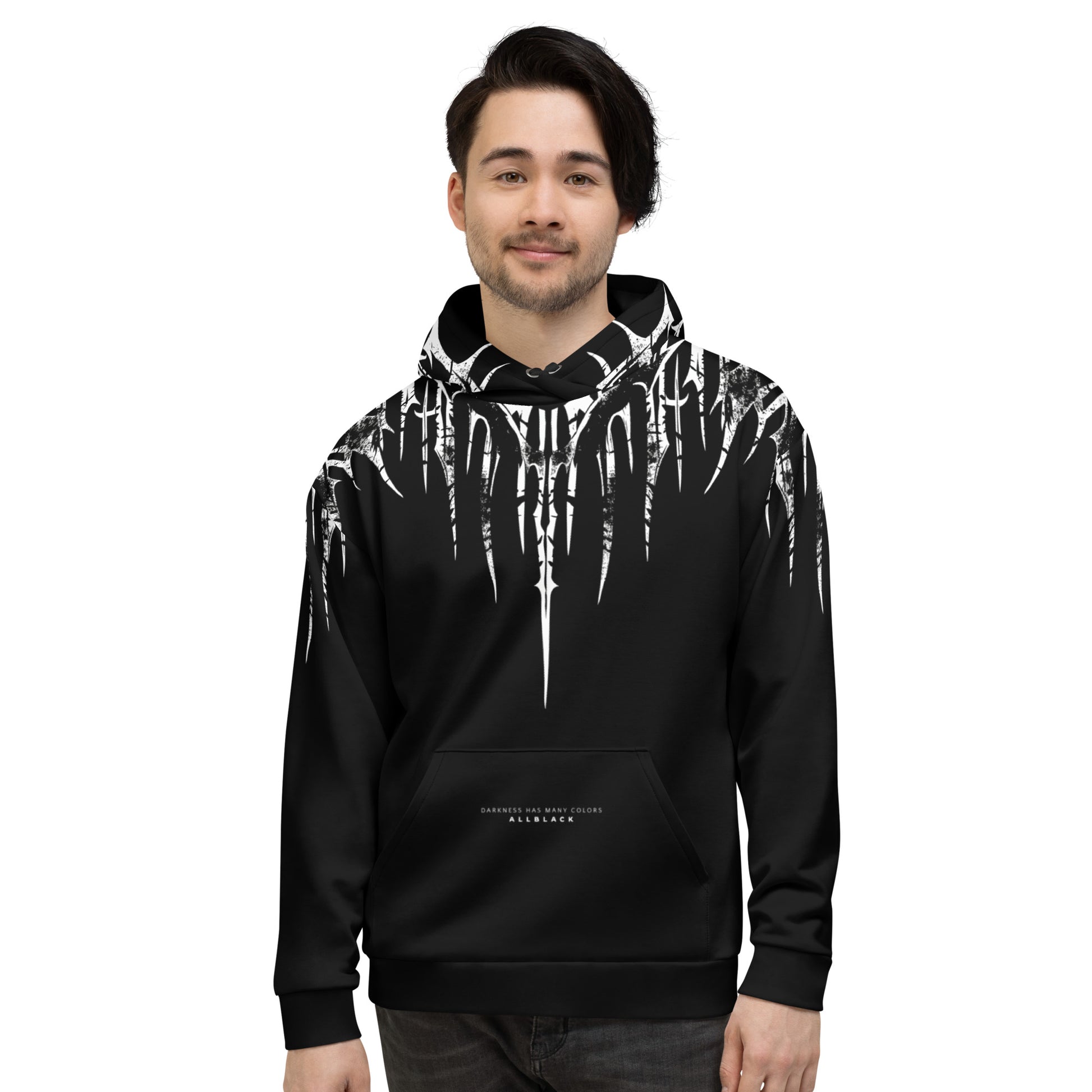 The FALLEN Hoodie is where functionality fuses with abstract beauty, offering a garment that’s as versatile as it is visually compelling. The phrase 'Darkness has many colors' subtly etched on the front pocket serves as a reminder that there is elegance in the shadows, waiting to be discovered.