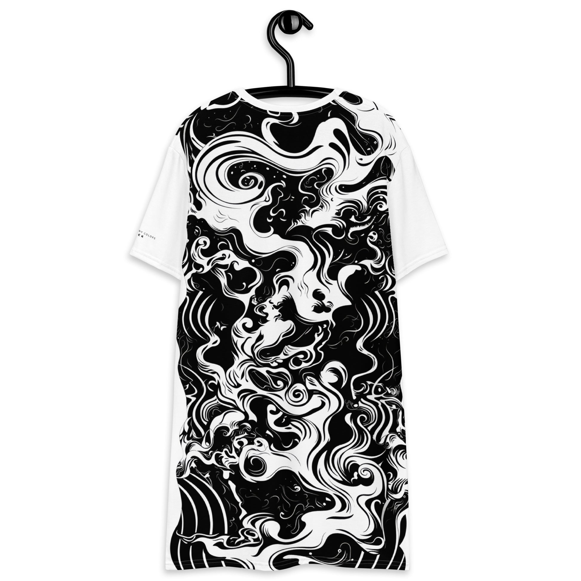 Wrap yourself in the 'VIBRANT' T-shirt Dress and let the abstract become your anthem. Here, the starkness of black and white plays your song, a visual melody that resonates with the spirit of the bold.